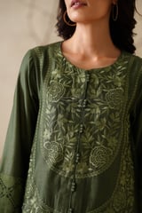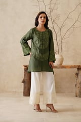Green Tunic and Cream Wide-Leg Pants Co-ord Set