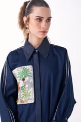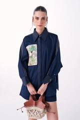 Navy Cotton Twill Shirt and Shorts Co-ord Set