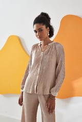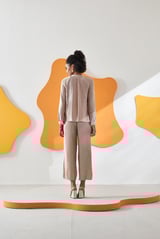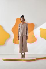 Ivory Pleated Button-Front Top and Culotte Co-ord Set