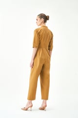 Camel Cotton Poplin Belted Tailored Jumpsuit