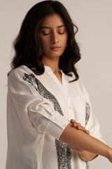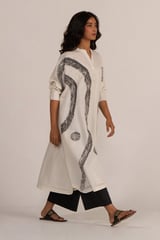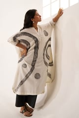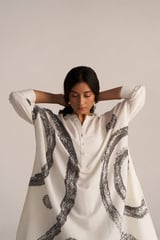 Off White and Black Abstract Print Cotton Co-ord Set