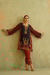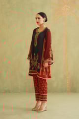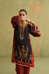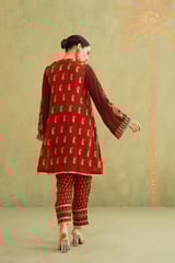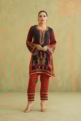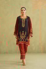 Red and Black Hand-Embroidered Crepe Co-ord Set