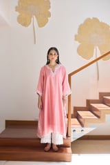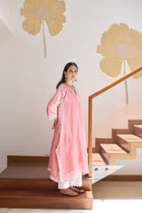 Pink Chanderi Asymmetrical Chikankari Kurta