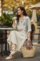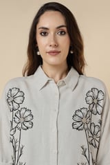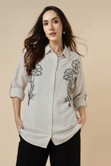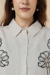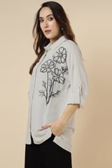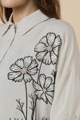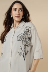 Natural Floral Embellished Longline Shirt