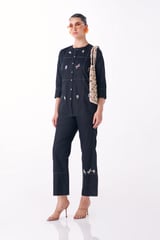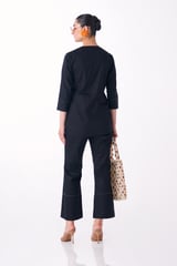 Black Cotton Satin Embroidered Shirt and Pant Co-ord Set
