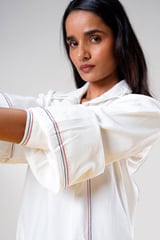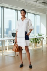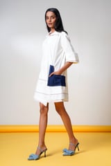 White Denim Mini Shirt Dress with Contrast Patch Pocket